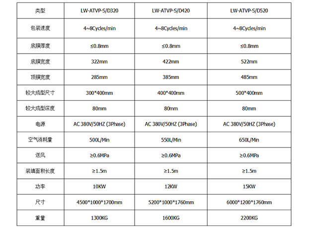 四、全自動(dòng)真空包裝機(jī)設(shè)備參數(shù):